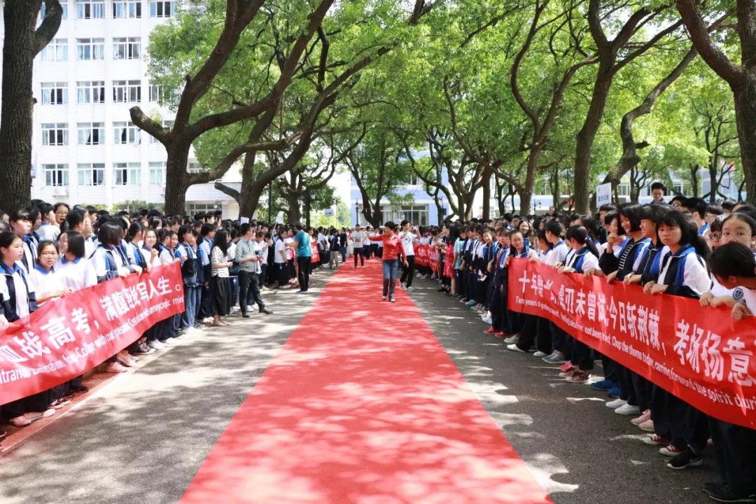 红红火火的状元门、长毯铺就的成功路、整齐分列的队伍……6月6日下午3点,全校师生在校园大道为高三学子送考壮行。