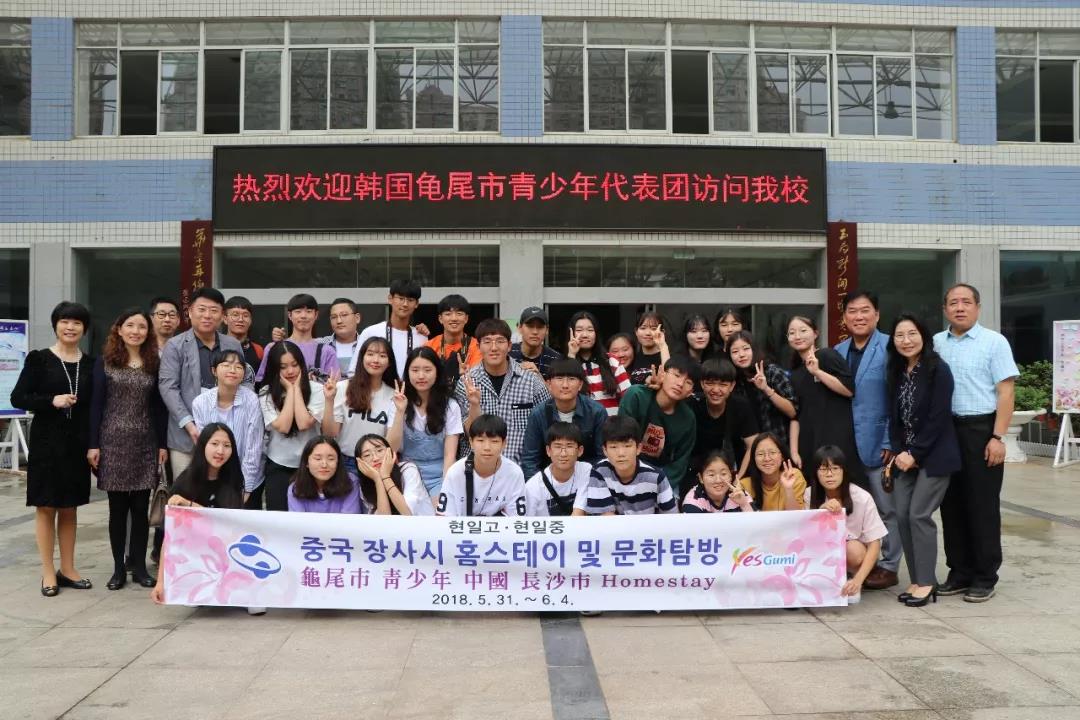 今年是长沙市与韩国龟尾市缔结友好城市20周年,作为两市缔结友好城市20周年系列活动的重要一环,5月31日至6月4日,以韩国龟尾市国际协力系申贤淑系长为团长的韩国龟尾市青少年代表团一行35人来我校交流访问。